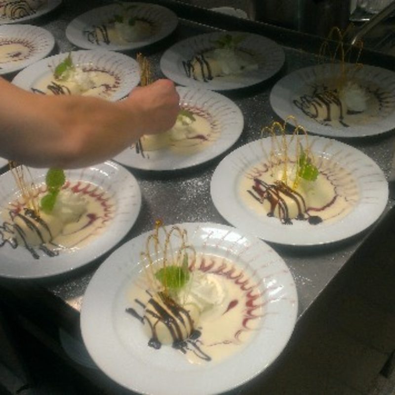 | APFELSTRUDEL | mit 1 Kugel Vanilleeis auf Schoko - Vanillespiegel und Sahne | 6,60 € |